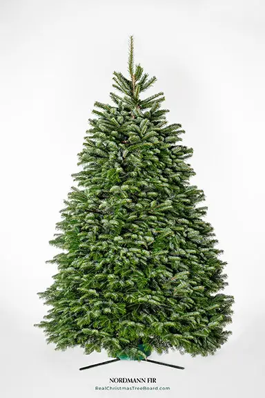 The Nordmann Fir is the most popular tree in Europe and is commonly grown in Germany and Norway. The Nordmann is gaining popularity in the U.S. because of its outstanding symmetrical form and relatively open branch structure with distinct whorls. The Nordmann is sheared and cultured in the U.S. which changes the natural characteristics of the tree. The needles are short, dark green that lay flat on the branch with a deep green silvery underside that is soft to the touch. It is considered a tree with long lasting qualities with minimal needle drop; although it does need to be displayed in water.